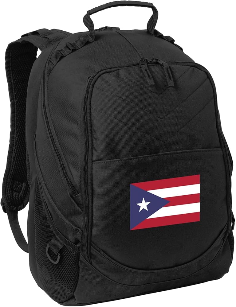 This well made, sturdy Puerto Rico flag backpack features multiple roomy, secure zippered compartments, a padded, channeled back for ventilation, and well padded and vented adjustable shoulder straps. This high quality Puerto Rican flag backpack has an exterior, easy-access padded laptop or tablet compartment. The Broad Bay Puerto Rico computer backpack is made with durable 600 Denier fabric and a reinforced base. This Puerto Rico Computer Backpack is a TOP Peace Frog gift idea for him or her! This unique Puerto Rico Backpack is perfect for college or travel. Dimensions: 17.75"h x 12.5"w x 7"d