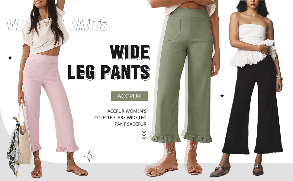 【Features】Women's lounge pants feature tailored wide-leg,ruffle hem,front patch pockets,back zipper,cropped length,loose fit,solid.Colette cropped long pants for women,which are also very easy to put on and take off.