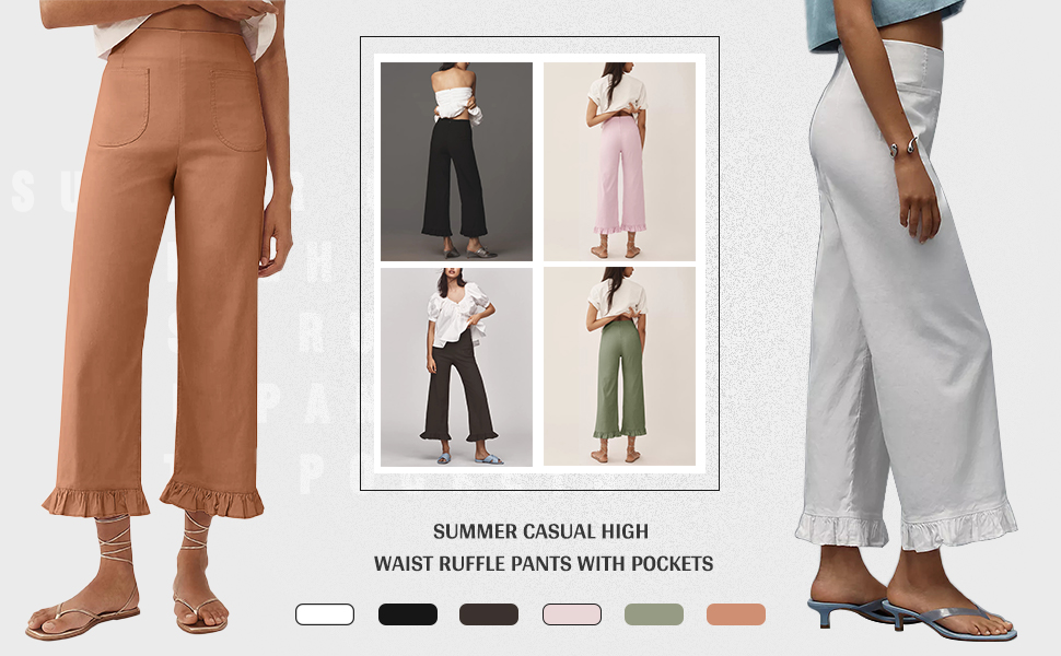 【Occasion】Womens cropped ruffle hem trouser is suitable for daily wear,home,work,campus,shopping,party,dating,outdoor,beach,travel,vacation.Spring,summer and autumn.It's also a good gift for your friends and family.