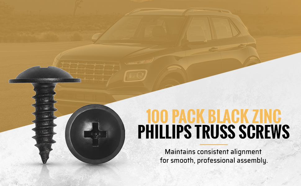 100 Pack Black Zinc Phillips Truss Screws | 4.8-1.61 x 16mm Sheet Metal Screws with 14mm OD Washer Head | Rust-Resistant Interior Trim Fasteners for Hyundai 12493-05167B