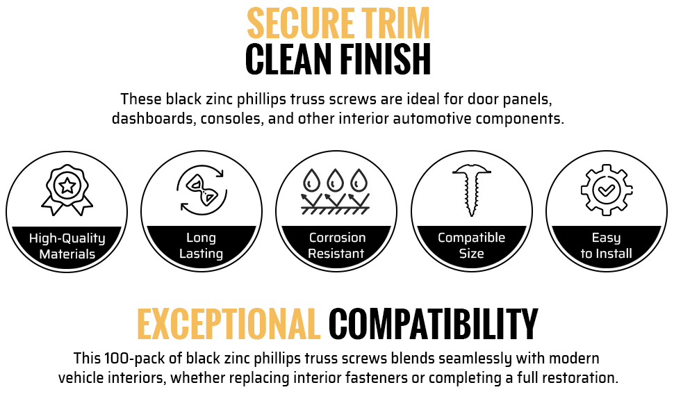 𝗔𝗨𝗧𝗢 𝗖𝗢𝗠𝗣𝗔𝗧𝗜𝗕𝗜𝗟𝗜𝗧𝗬: Built to meet Hyundai OEM standard 12493-05167B, these trim screws are ideal for door panels, dashboards, consoles, and other interior automotive components.