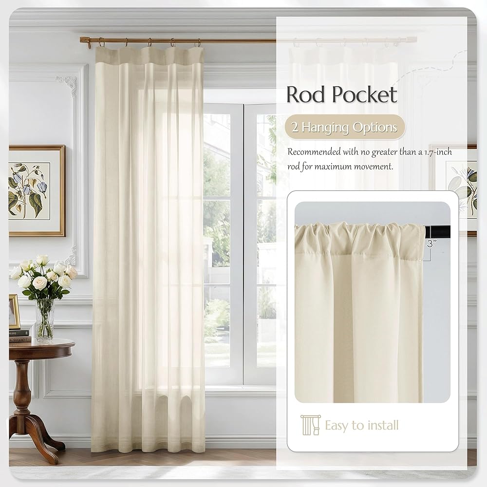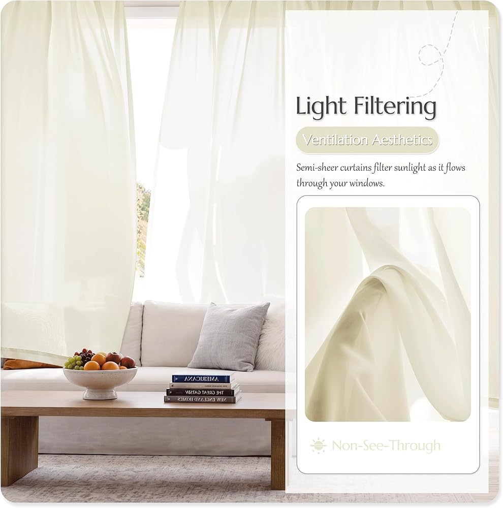 Package Includes: The set includes 2 solid sheer curtain panels, each measuring 52 inches wide by 84 inches long, perfect for most standard windows. The lightweight fabric drapes beautifully, adding a fresh and elegant touch to your home.
