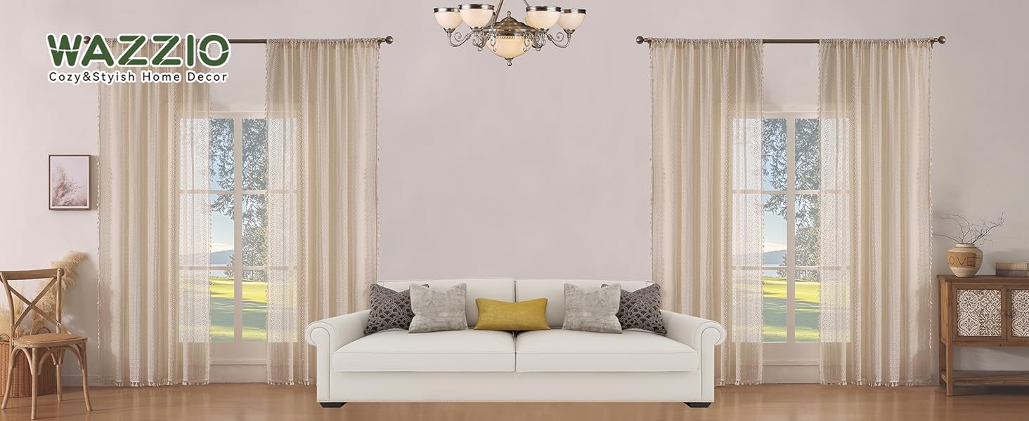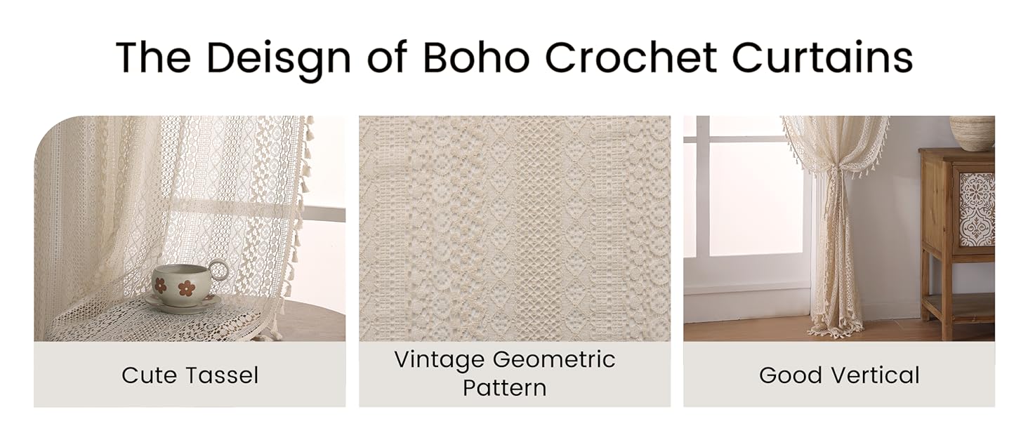 Balance the Privacy and Light Filtering: Crochet cotton blend fabric filters 20% light while maintaining soft glow illumination,Achieve energy-saving brightness & daytime privacy simultaneously.Unique lace density: See outward clearly without exposing indoor activities