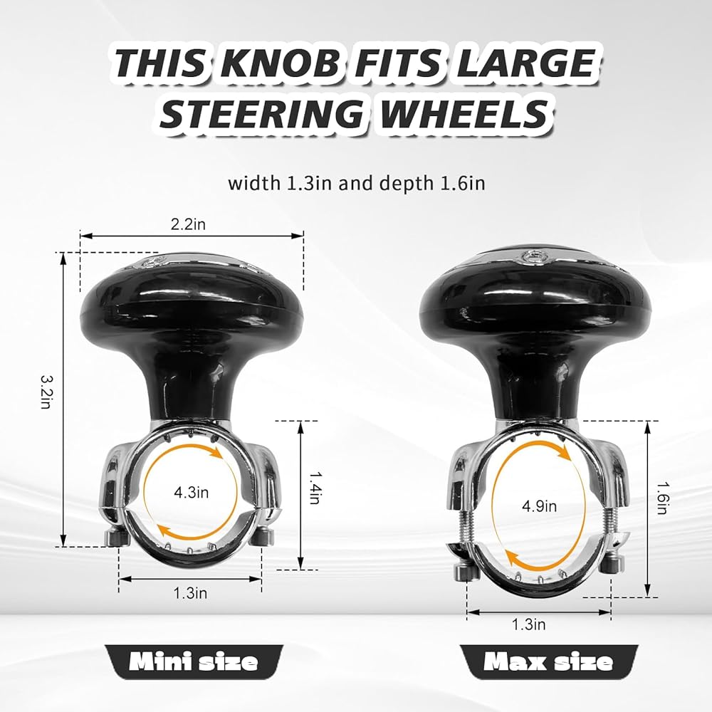 【Universal Size】This steering wheel assist knob is suitable for most steering wheels with a diameter of 1 inch to 1.6 inches. It is widely compatible with cars, trucks, semi-trailers, tractors, lawnmowers, forklifts, and boats/yachts, providing a practical assist handle accessory to meet the steering wheel upgrade needs of all vehicles/vessels. This is a versatile driving aid that can be used in various scenarios