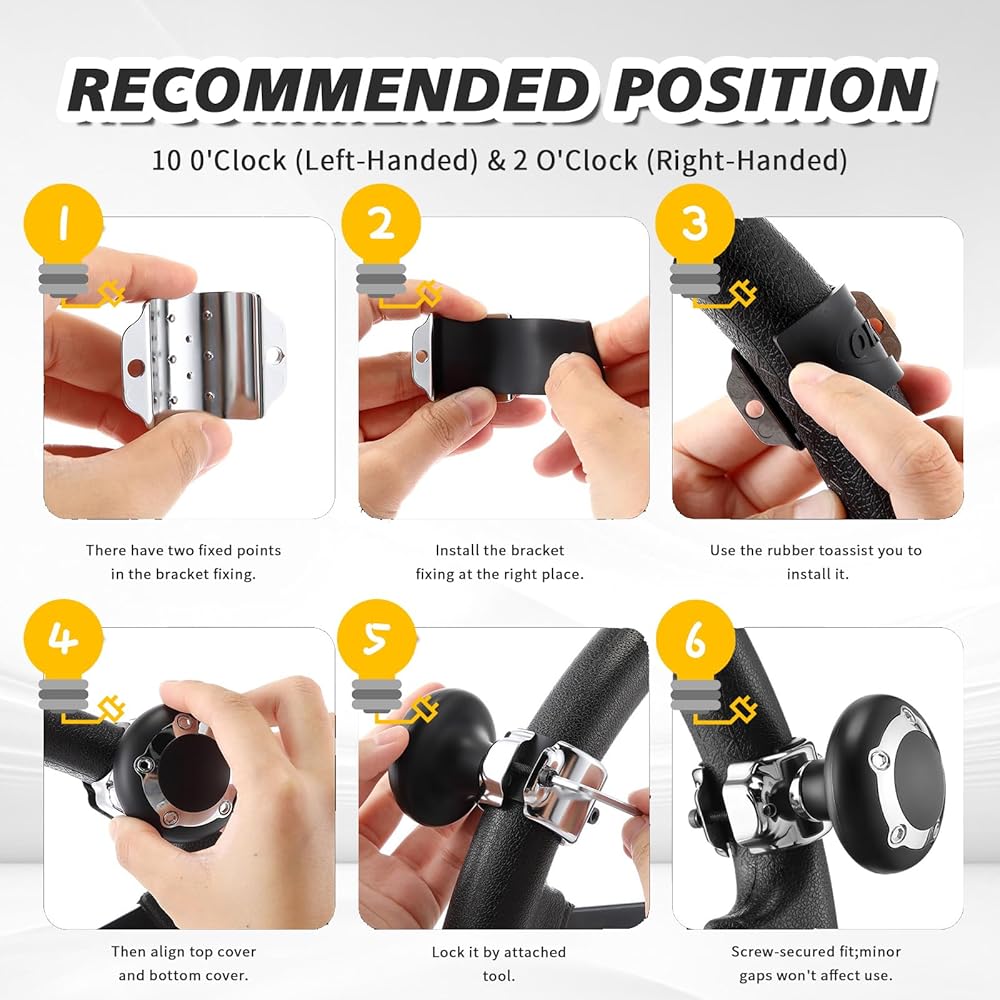 【Easy Installation】No tools required, simple and convenient operation! Simply fix the rubber strip to the installation position of the steering wheel spinner, align it with the rotating base, and tighten the screws; the rubber strip is adjustable and can adapt to steering wheels of different thicknesses, ensuring a tight fit (the rubber strip increases friction, do not discard it)