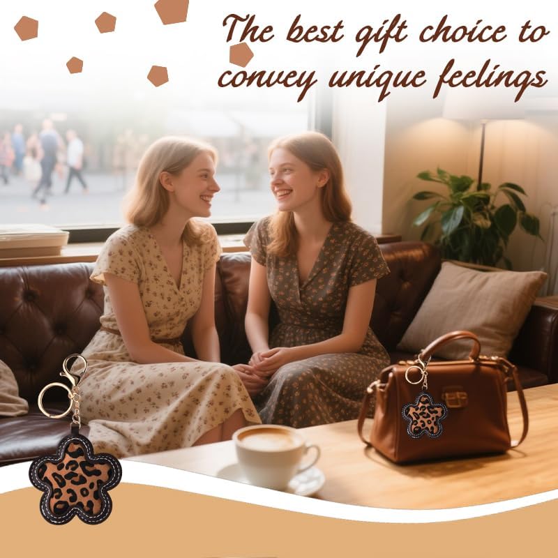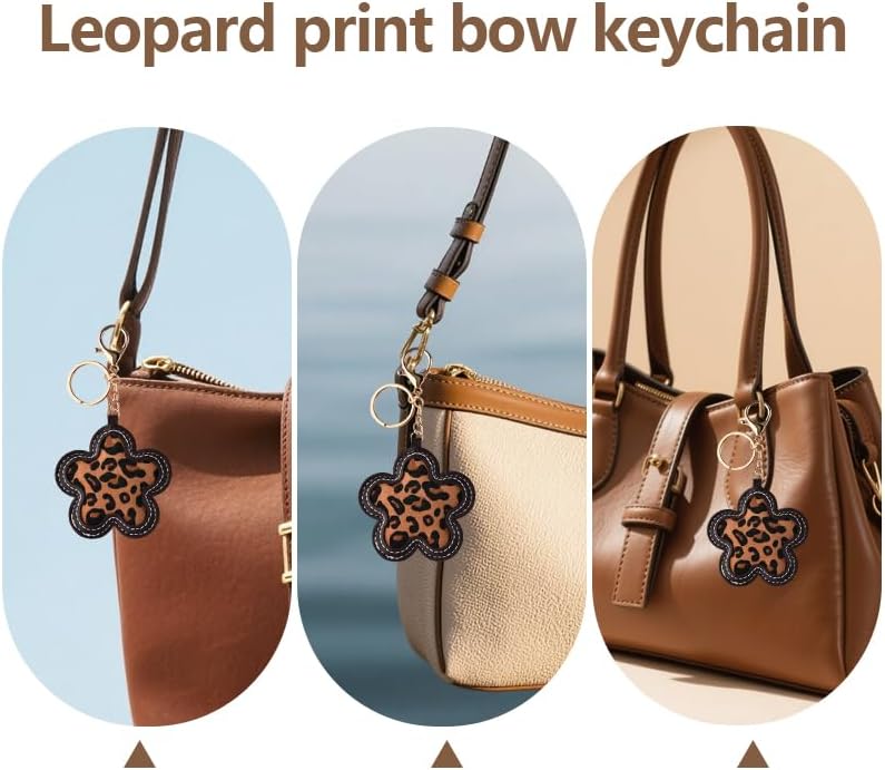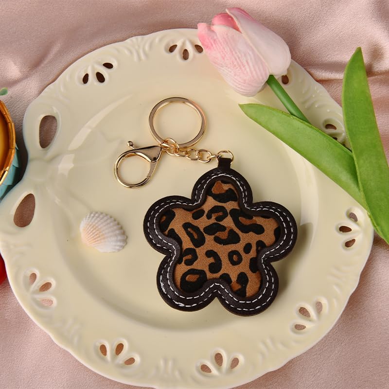 Leopard Printed Flower Shaped Keychain Cheetah Print Floral Bag Charm Flower Pendant Keyring for Women Backpack Purse Handbag Decor Bags Charm Accessories Keys Holder Car Door Key Organizer