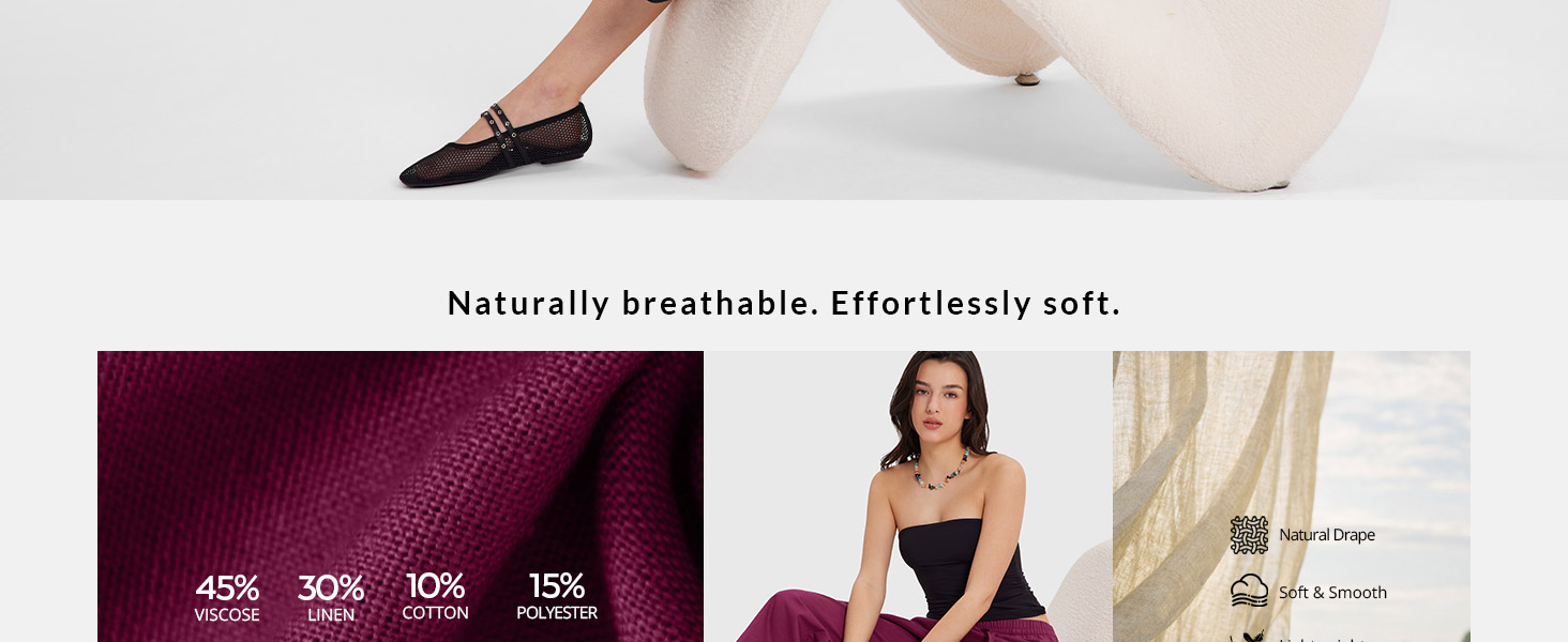 Breathable Fabric: 30% Linen, 10% Cotton, 45% Viscose, 15% Polyester (NOTE: MACHINE WASH, AIR DRY. DO NOT USE DRYER TO AVOID SEVERE SHRINKING!)