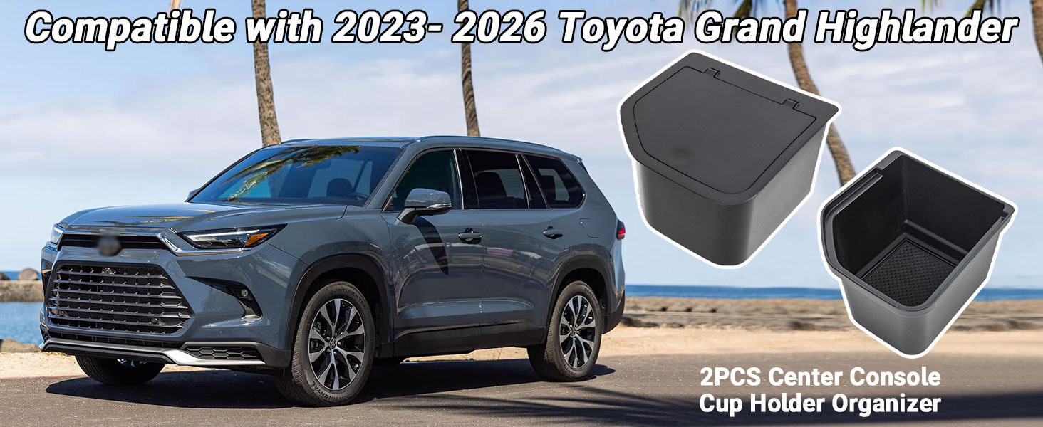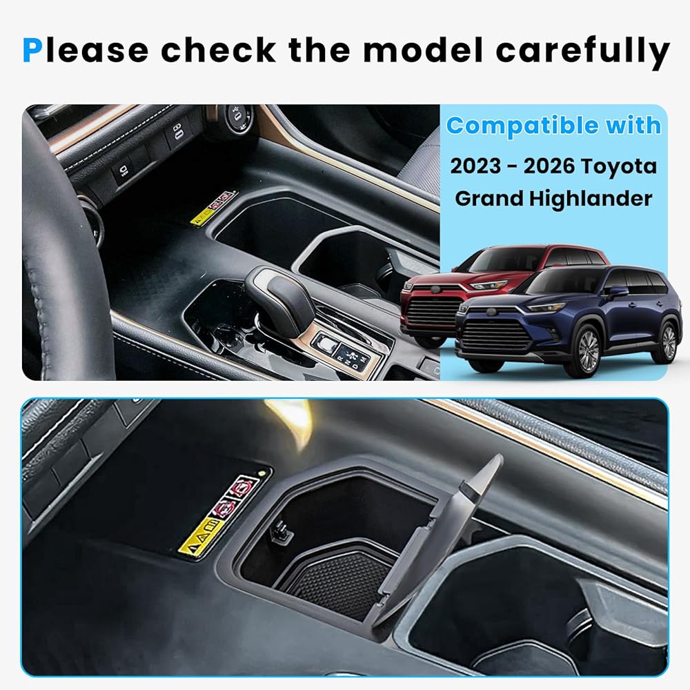 Applicable Models: This 2-piece center console cup holder organizer is compatible with 2023–2026 Toyota Grand Highlander models; Please carefully confirm your vehicle before purchasing