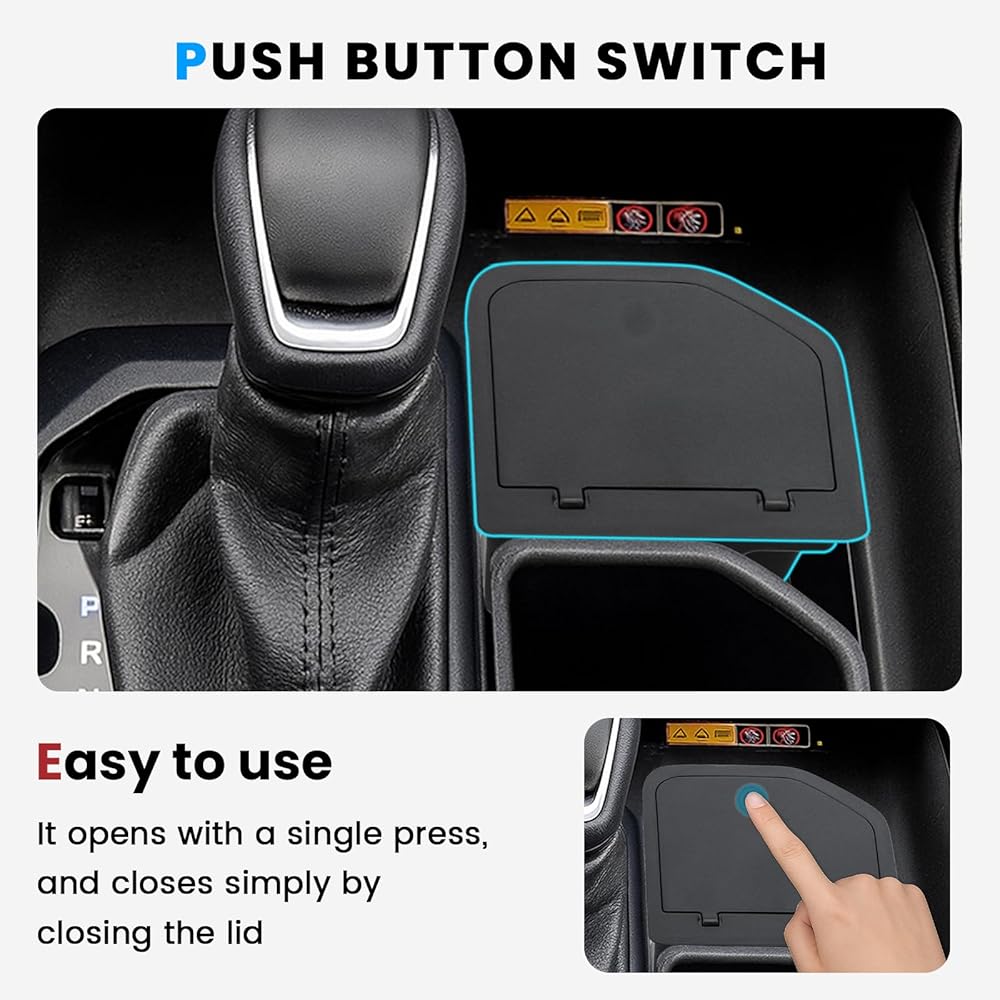 Thoughtfully designed: The cup holder insert is specifically engineered for the center console; its two-layer stacked design provides organized storage for everyday essentials, and the upper storage box lid opens with a press