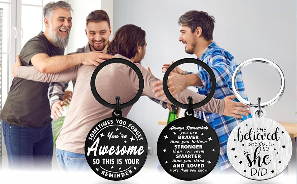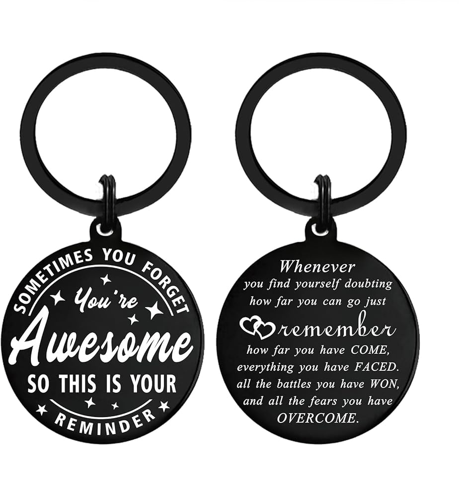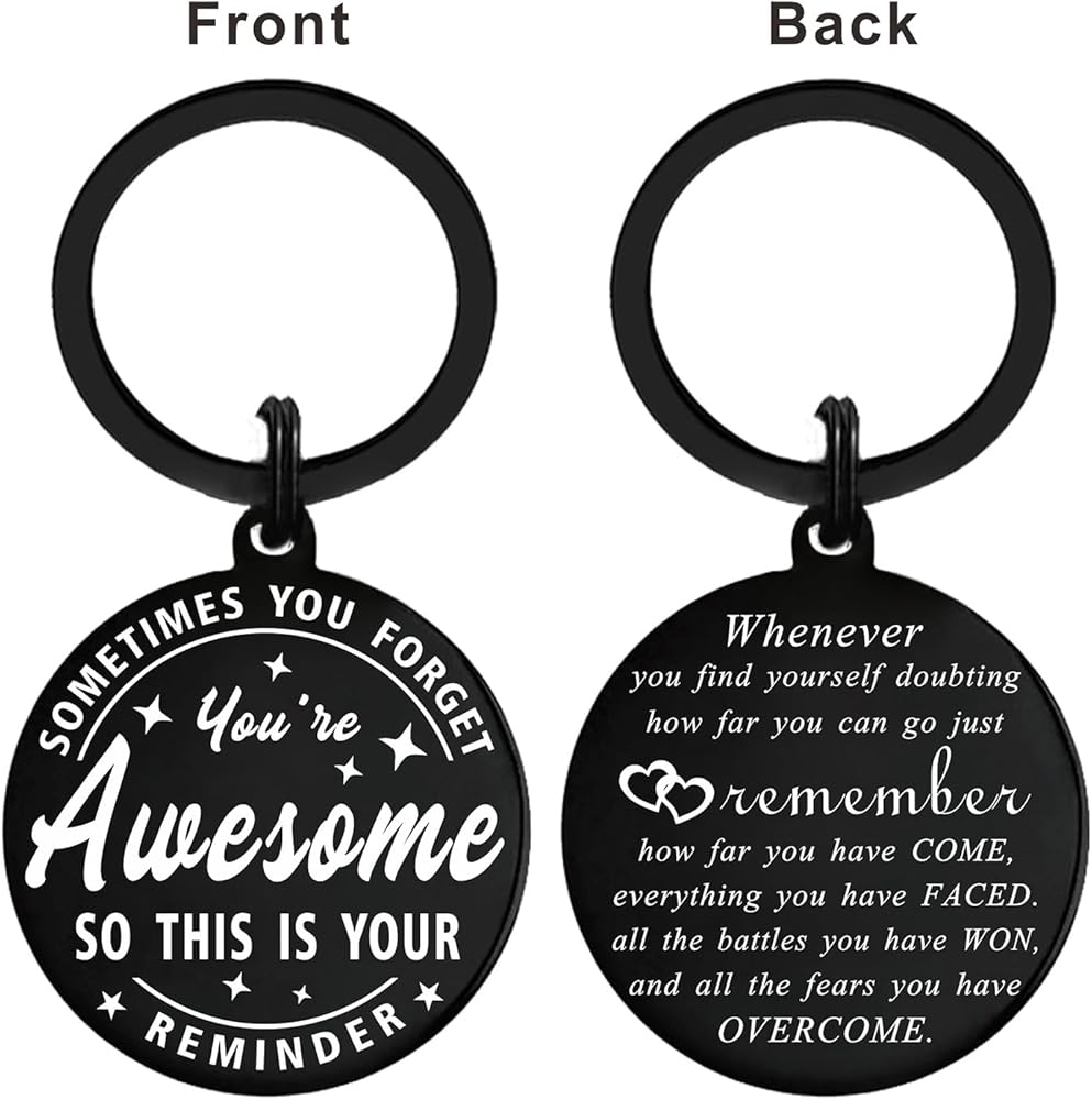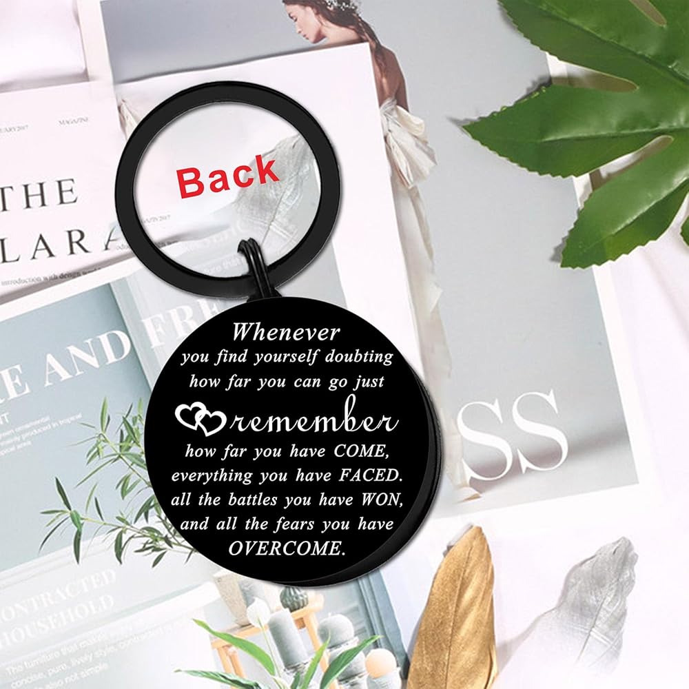 INSPIRATIONAL GIFTS,Inspirational quotes keychain:Whenever you find yourself doubting how far you can go just remember, how far you have come, everything you have faced. all the battles you have won, and all the fears you have OVERCOME. Other side engraved: sometimes you forget you're awesome so this is your reminder