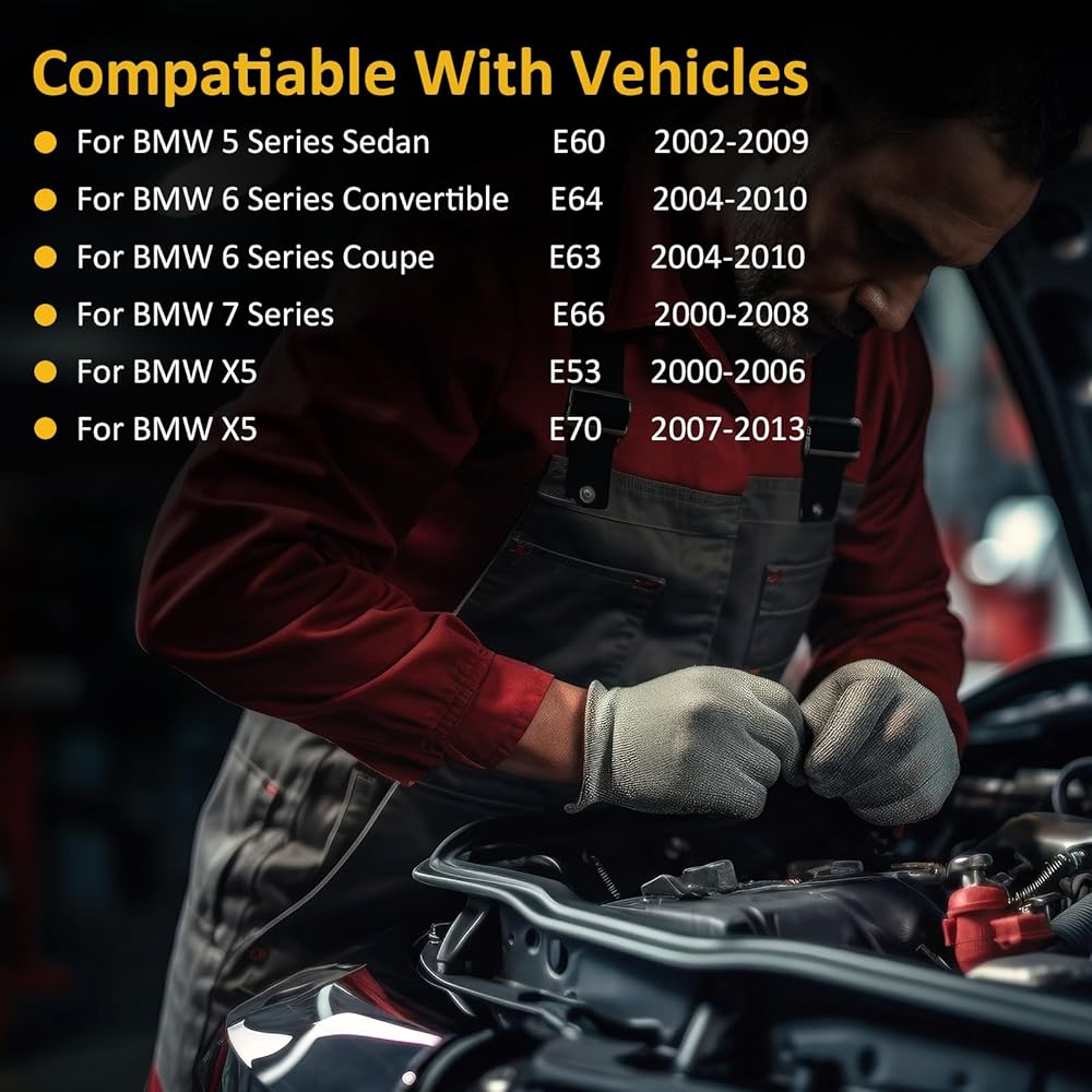 Vehicle Fitment 1: Fit For BMW 5 Series Sedan (E60) 2002-2009 545i 550i; 6 Series Convertible (E64) 2004-2010 645Ci 650i; 6 Series Coupe (E63) 2004-2010 645Ci 650i; 7 Series (E66) 2000-2008 735Li 740Li 745Li 750Li 760Li; X5 (E53) 2000-2006 4.4i 4.8is; X5 (E70) 2007-2013 4.8i.