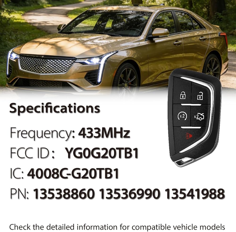 1 Keyless Entry Remote: Part Number:13538860 FCC ID:YG0G20TB1, replacement for 2020-2024 Cadillac. For full complete list, please check our product description