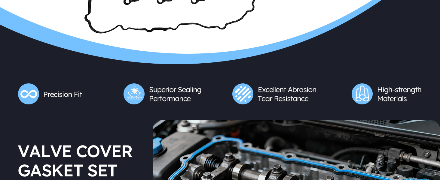 [Perfect Fitment]: Check our product description to make sure our Engine Valve Cover Gasket Set fit your vehicle. Compatible with Hyundai 2012-2017 Azera 3.3L V6, Genesis 3.8L V6 2011-2016, Genesis Coupe 3.8L V6 2013-2016, Santa Fe 3.3L V6 2013-2018, 2013-2015 Santa Fe XL 3.3L V6, Compatible with Kia Cadenza 3.3L V6 2014-2016, K900 3.8L V6 2015-2017, Sedona 3.3L V6 2015-2018, Sorento 3.3L V6 2014-2018