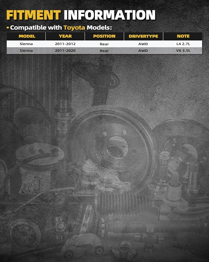 [Compatibility Info] - Compatible with Toyota Sienna AWD 2011-2012 2.7L/3.5L, Toyota Sienna AWD 2013-2020 3.5L, Rear Left & Right, Non-ABS, All Wheel Drive Only