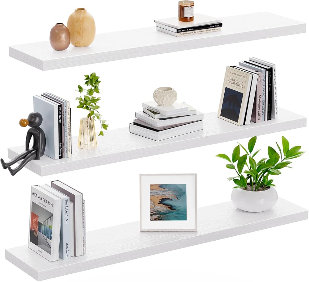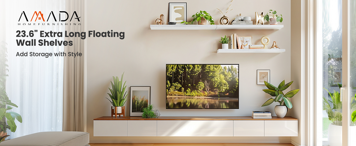 AMADA HOMEFURNISHING 23.6" L Floating Shelves, Wall Shelves Set of 3 for Bathroom/Living Room/Bedroom/Kitchen, White Floating Shelves for Wall Decor with Invisible Brackets - AMFS44W