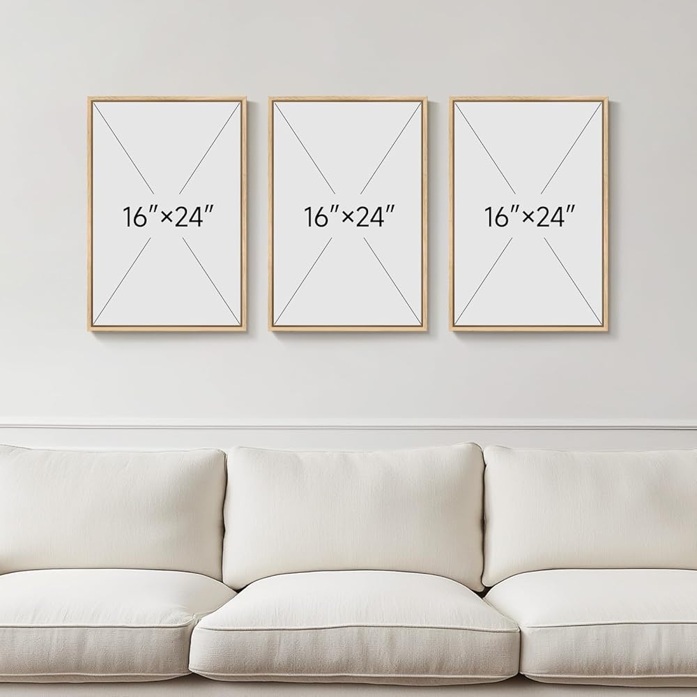 Framed Abstract Sage Green 3 Piece Wall Art for Living Room, Modern Neutral Waves Botanical Canvas Artwork for Walls, Minimalist Wabi Sabi Rustic Nature Print Wall Decor for Bedroom Office, 16x24 Inch