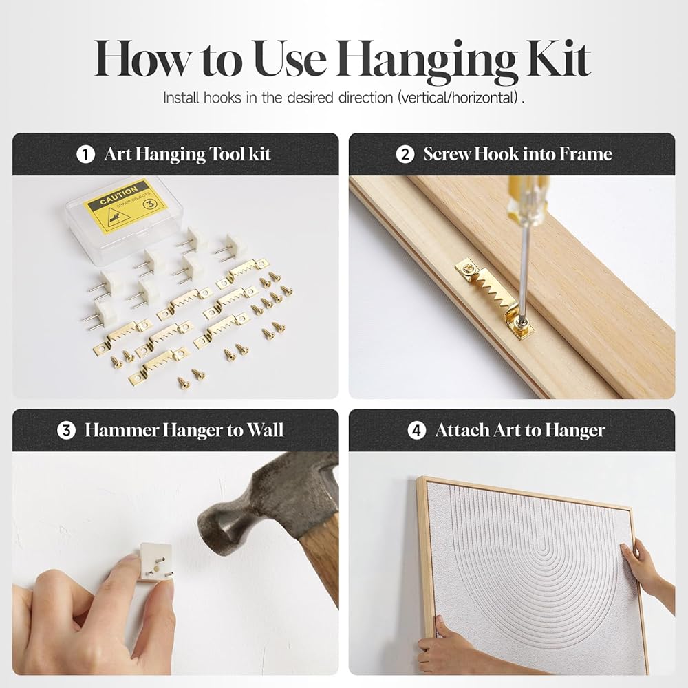 [Easy to Hang]: Measuring 16"Wx24"H, this abstract modern sage green framed canvas wall art comes assembled with the frame in place. All hanging hardware is included for quick, easy installation. The listing images show step-by-step mounting, so it's beginner-friendly