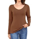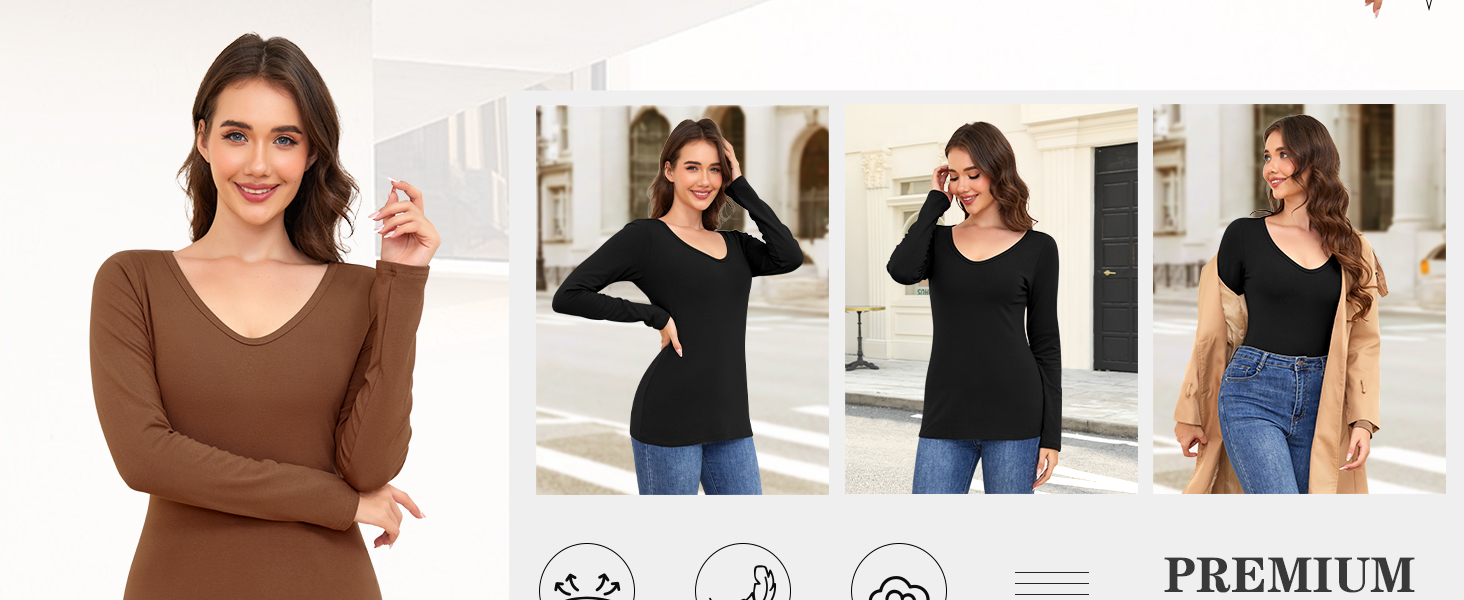 Premium Basic Tops - The long sleeve tops for women is composed of 90% rayon and 10% spandex. Super soft, comfortable, breathable and stretch fabric makes our undershirts resist balling up, shrinkage and static. As a basic layering tops, our v neck thermal shirts for women fits for diverse body types impeccably