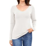 V Neck Tops for Women - V neck design makes the long sleeve shirts sexy and fashion, casual and free movement. Enhanced by long sleeves and secure wrist closures, the thermal shirt expertly retains warmth, warding off cold air with effortless grace