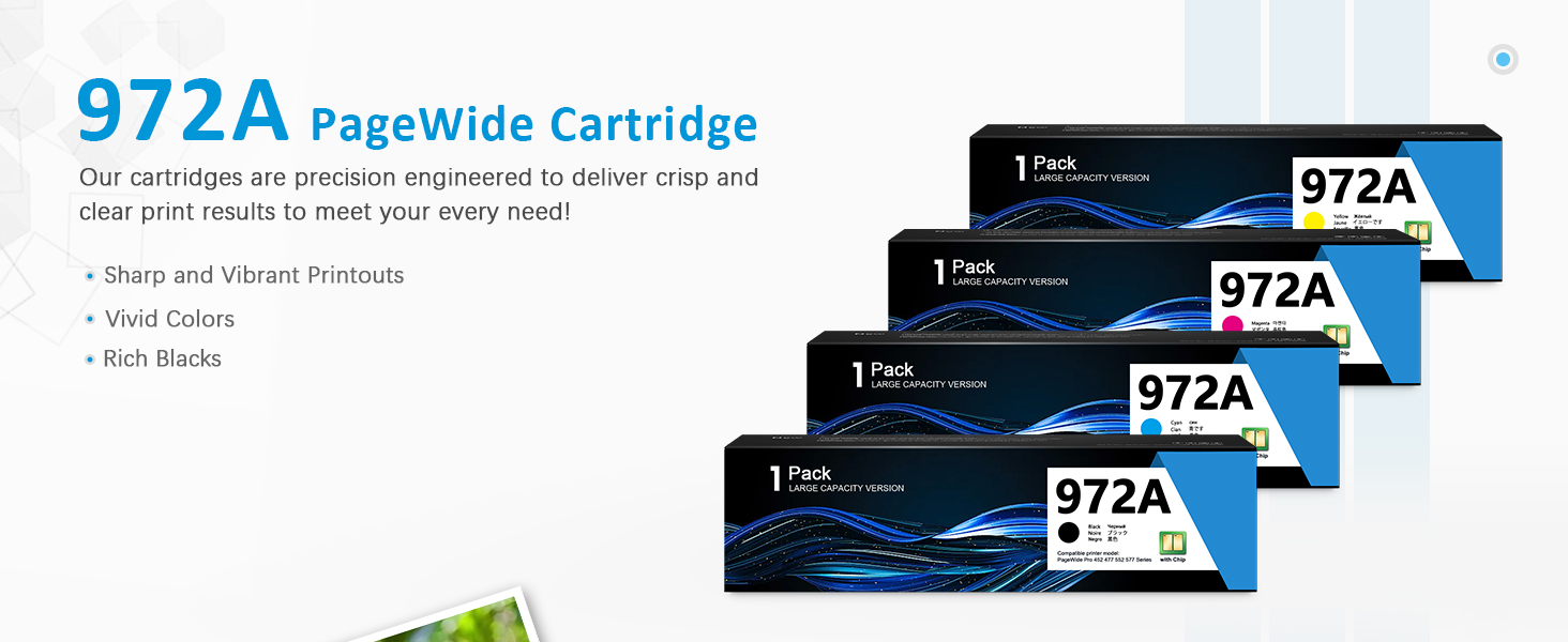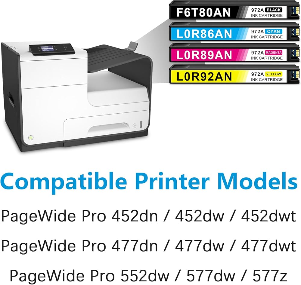 These 972A Ink cartridge works with: PageWide Pro 452dn 452dw 452dwt 477dn 477dw 477dwt 552dw 577dw 577z Printers