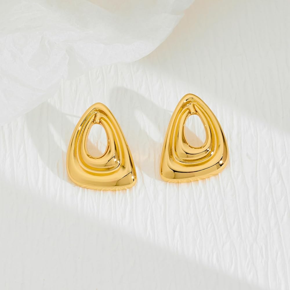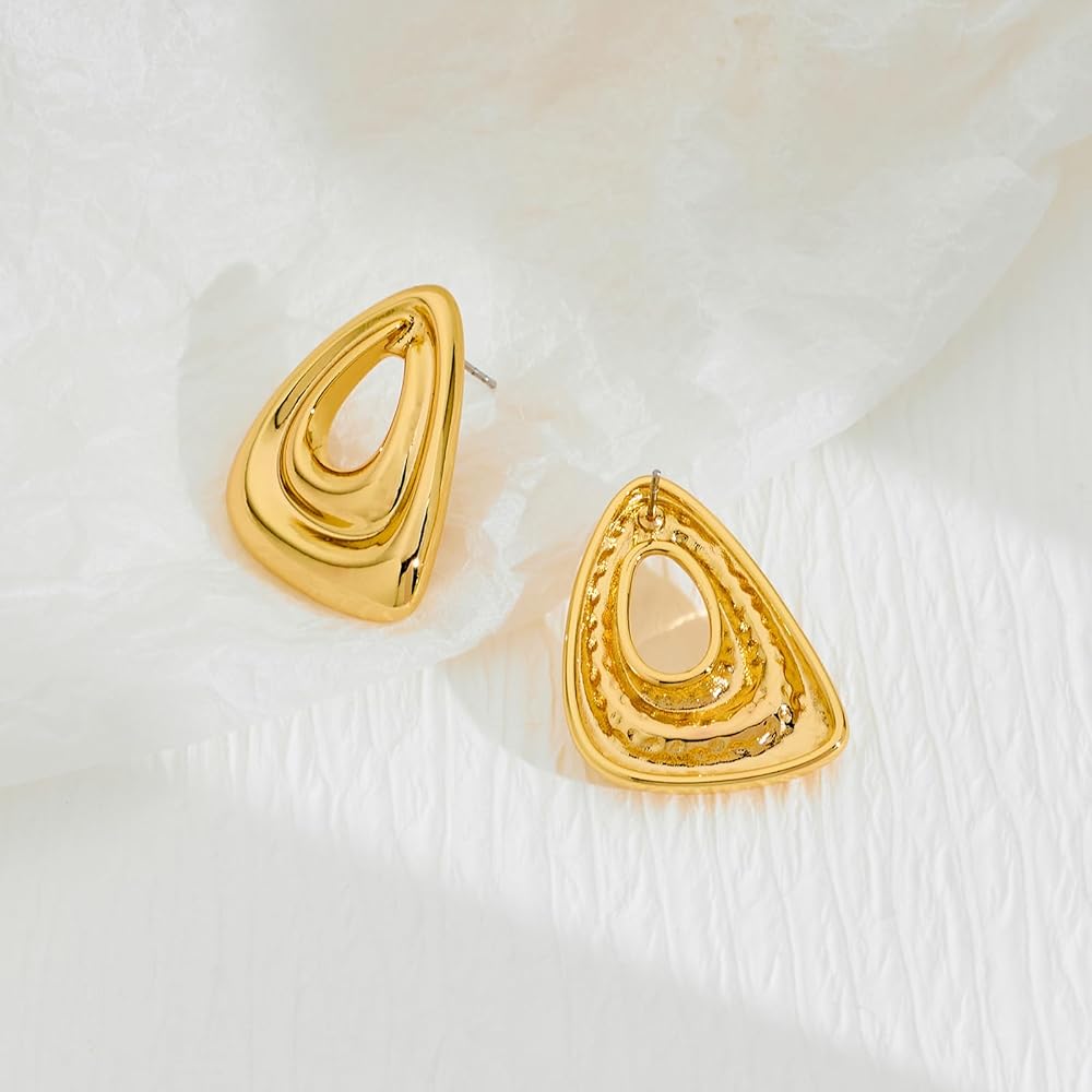 Gold stud earrings: Perfect for everyday wear, these statement geometric earrings have a classic design that never goes out of style nickel and no lead, safe for sensitive skin, bring no burden to your ears