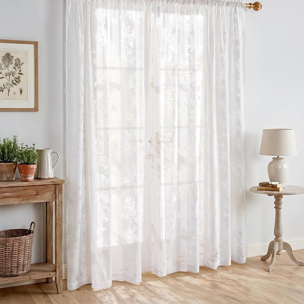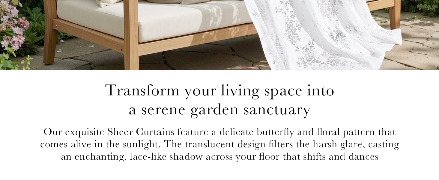 Enchanting 3D Dimension:These white sheer curtains feature an intricately embossed floral and butterfly motif. As sunlight passes through, the hollow-cut patterns create captivating layers of shadow and light—brightening your room with a soft, ethereal glow that elevates any space with delicate elegance.