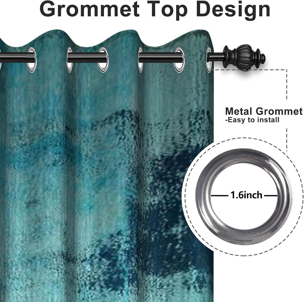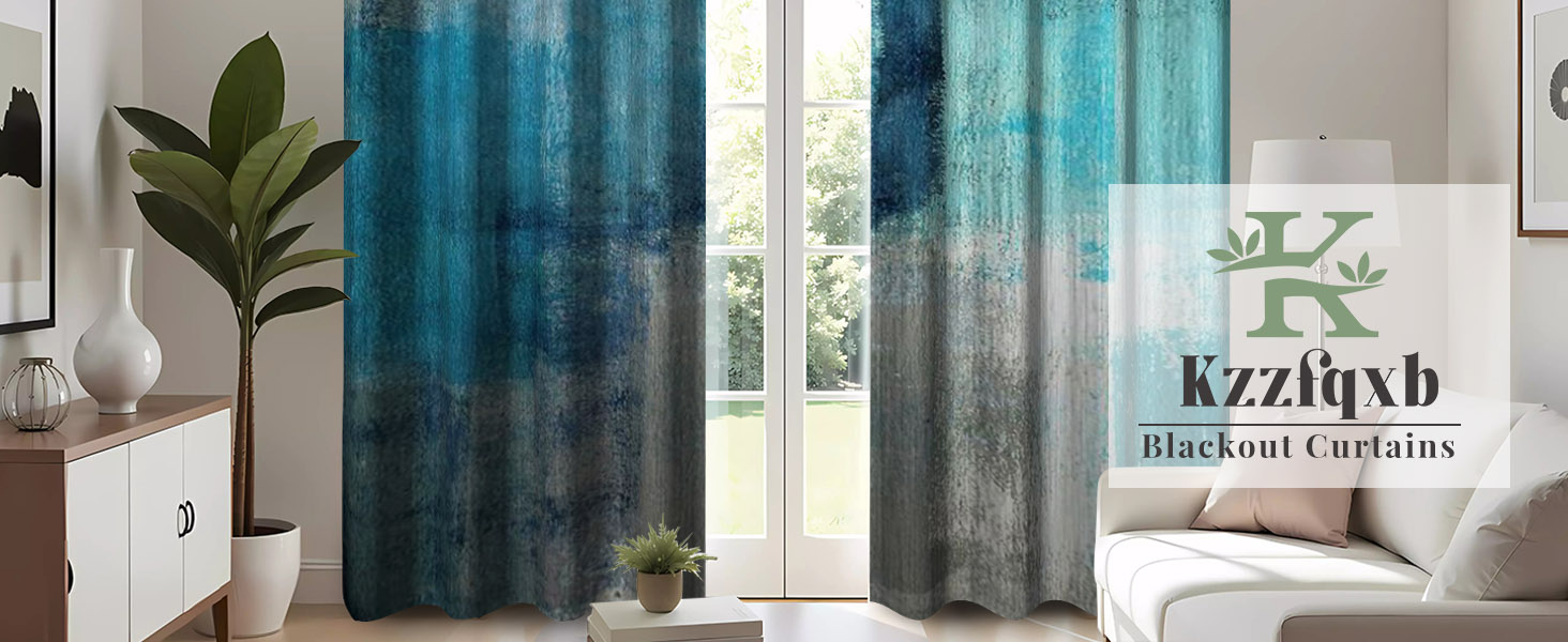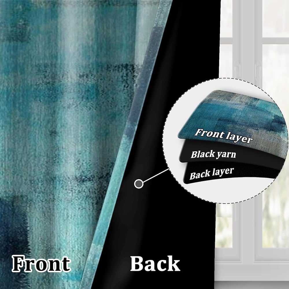 Teal Blue Abstract Art Curtains for Bedroom, Modern Contemporary Watercolor Print Turquoise Grey Window Drapes for Din, Cool Tone Painting for Living Room Decor,2 Panels,Each W42 xL63