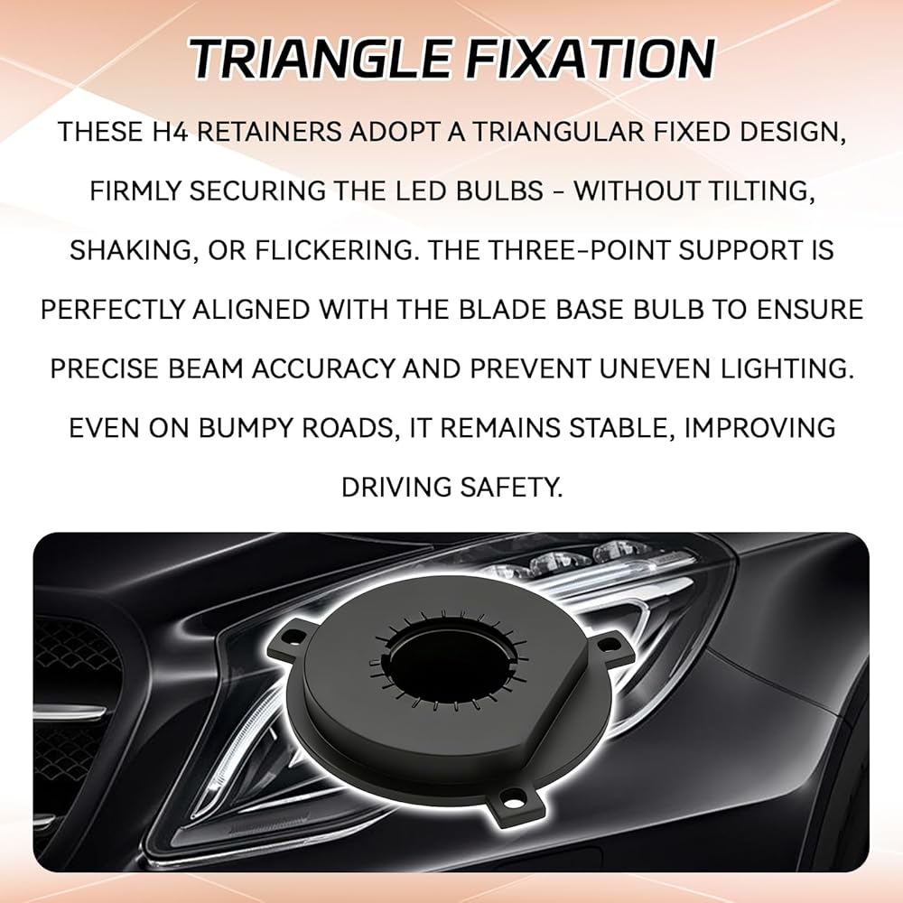 Sturdy Support: This headlight bulb sockets retainers holder features a triangular design that securely holds LED bulbs in place, providing effective support to prevent tilting or wobbling. Even when driving on bumpy roads, the bulbs will remain firmly in place