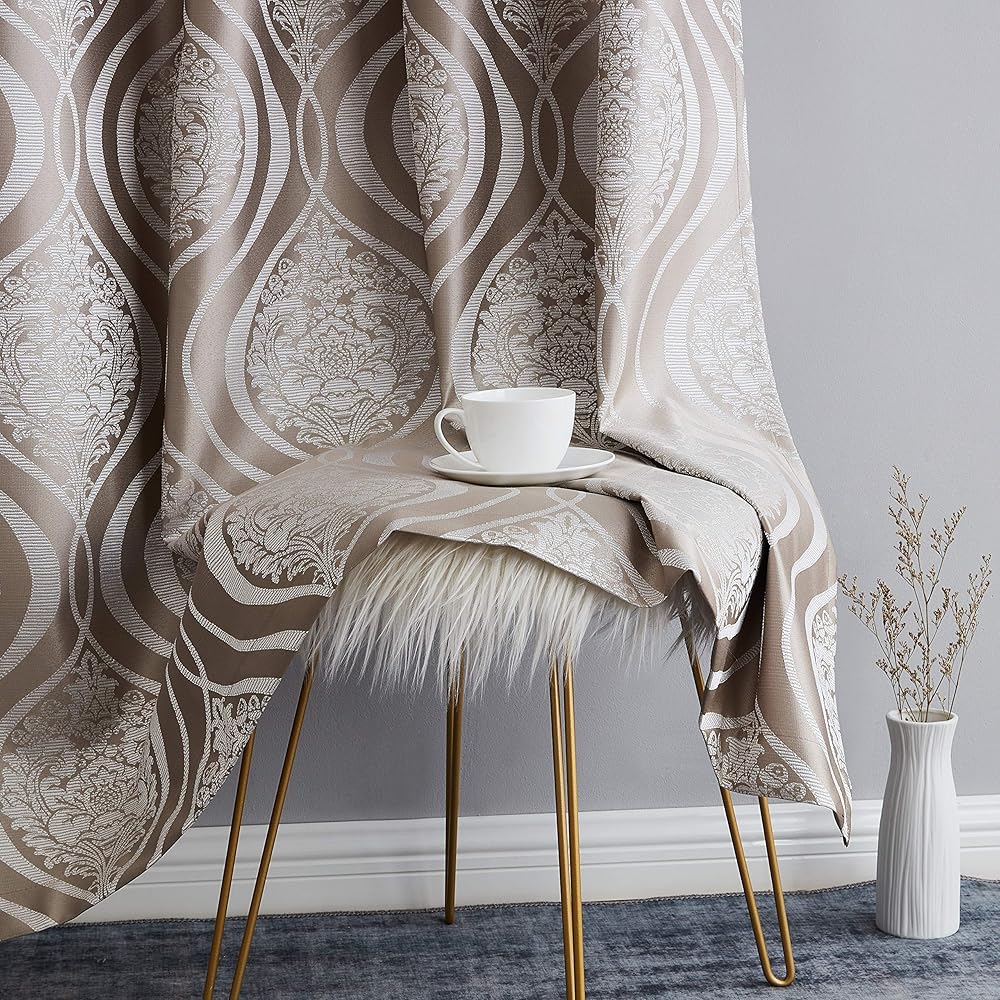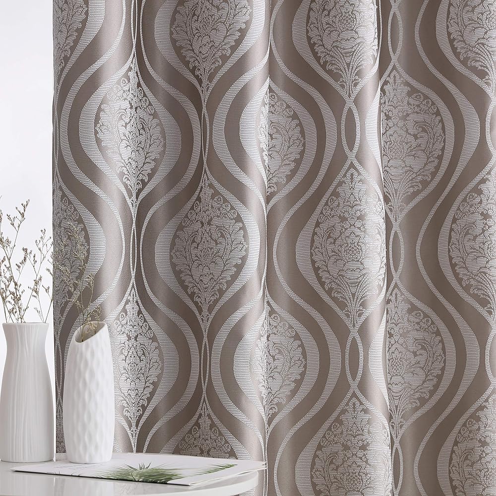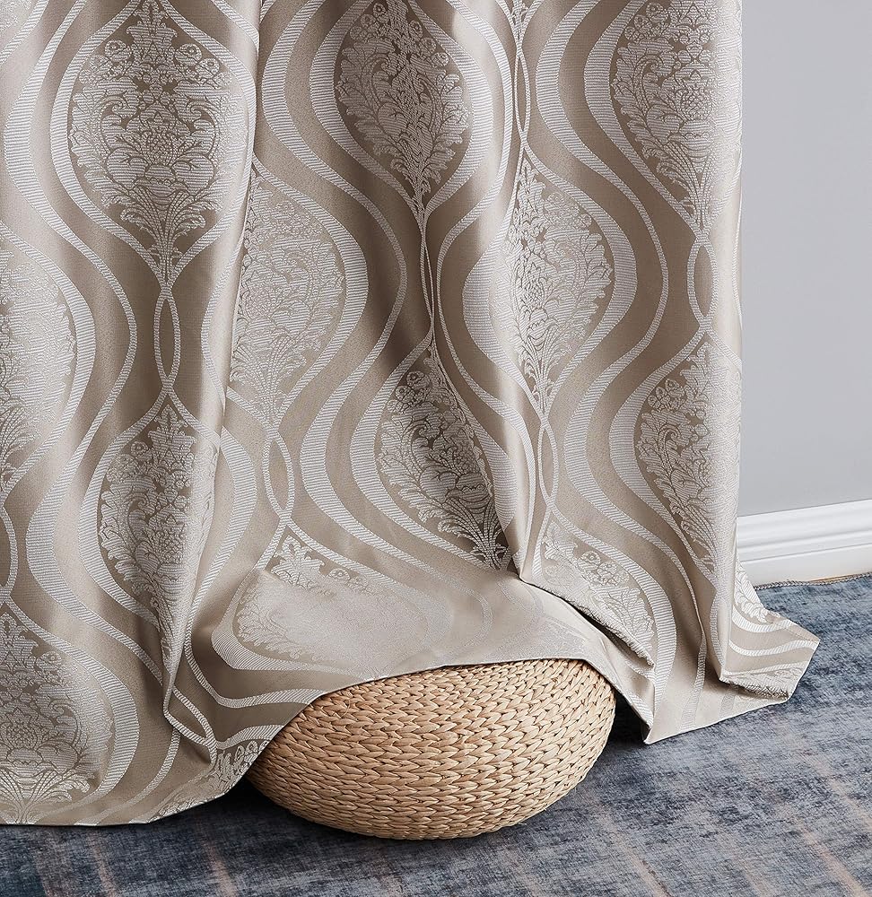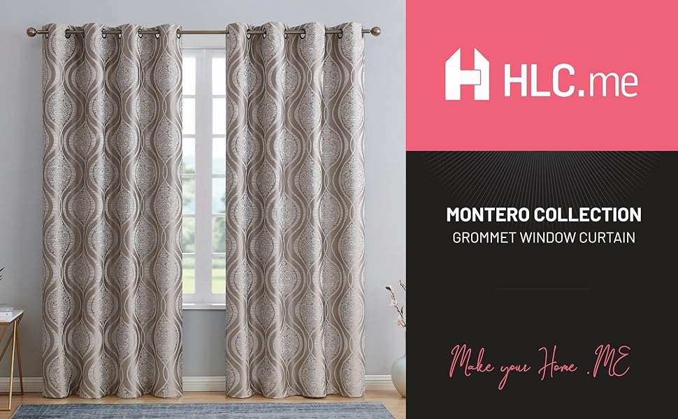 HLC.ME Montero Damask 100% Blackout Heavy Thermal Insulated Energy Savings Heat/Cold Blocking Grommet Curtain Panels for Bedroom & Living Room - 52 W x 84 L per Panel, Dark Charcoal Grey (Pack of 2)