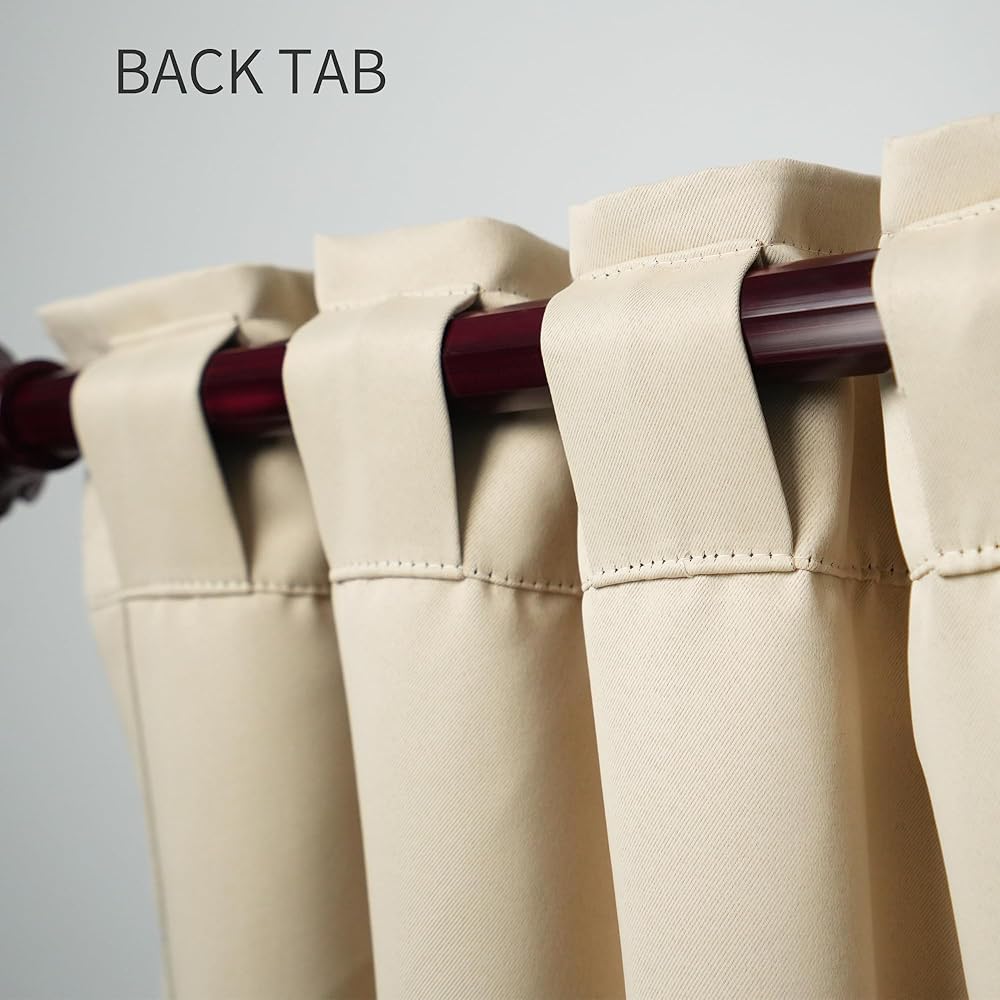 INLINAS Beige Blackout Curtains with Sheer Overlay - Back Tab and Rod Pocket Thermal and Noise Reduction Panels for Bedroom and Living Room Light Blocking and Energy Saving, 52 x 63 Inches, Set of 2