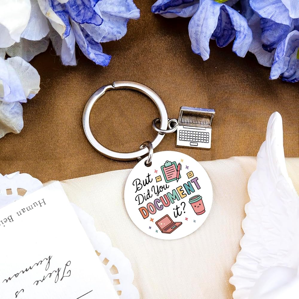 Executive Assistant Gifts/Secretary Day Gift Ideas:Features humorous "But Did You Document It" typography with colorful clipboard, laptop, and coffee graphics, plus realistic 3D laptop charm. Compact round design attaches easily to work keys, lanyards, or bags—adding office humor while celebrating their documentation superpowers.