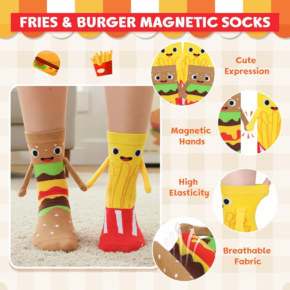 A Gift That Feels Fun When Eating : Some gifts don't need to be formal; they just need to be fun and reflect your relationship. This set of hamburger and fries magnetic socks is perfect for friends, besties, sisters, couple or foodie. Whether it's a birthday, Easter, holiday party, or gift exchange, these socks will make you stand out from the crowd of gift givers