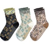 These pilates grip ankle socks are designed for comfort, balance, and stylish studio workouts. This 3-pair set features rich floral embroidery with vintage-inspired color combinations, creating a unique and artistic look for yoga and pilates practice. Non-slip grips on the sole help improve stability during barre, yoga, and home workouts. Lightweight and breathable, these ankle socks are perfect for studio sessions, balance training, or comfortable indoor wear.