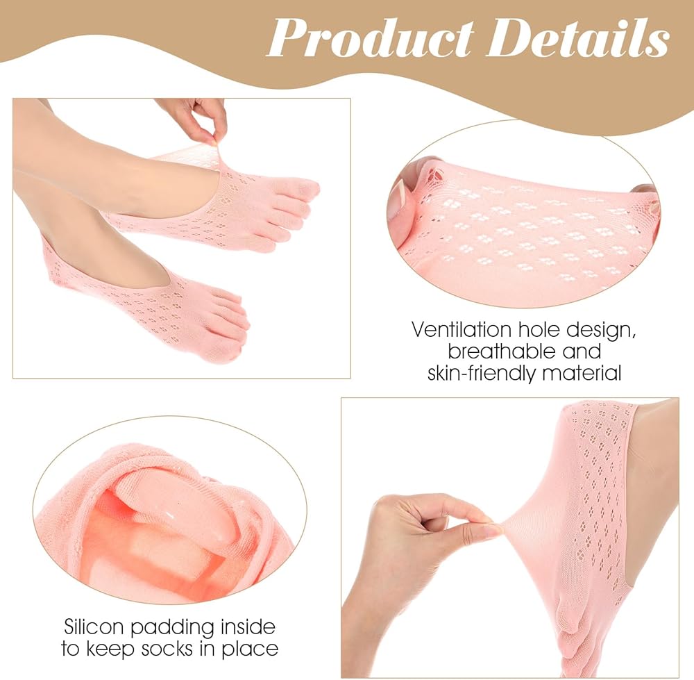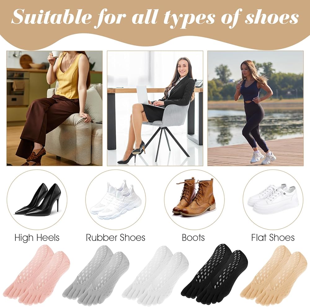 Package Includes: 5 Pairs (Black/White/Gray/Pink/Nude) of toe socks. Ideal for yoga, running, work, or daily wear. Machine washable for easy care.