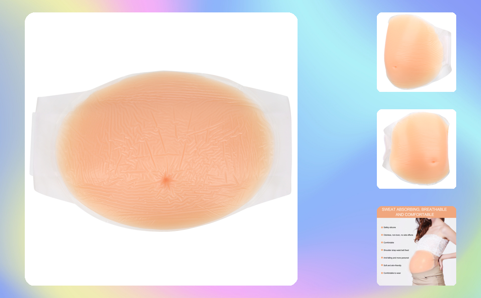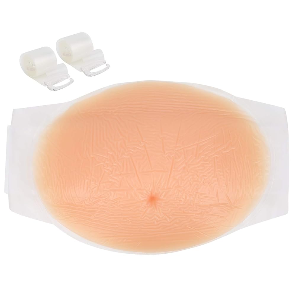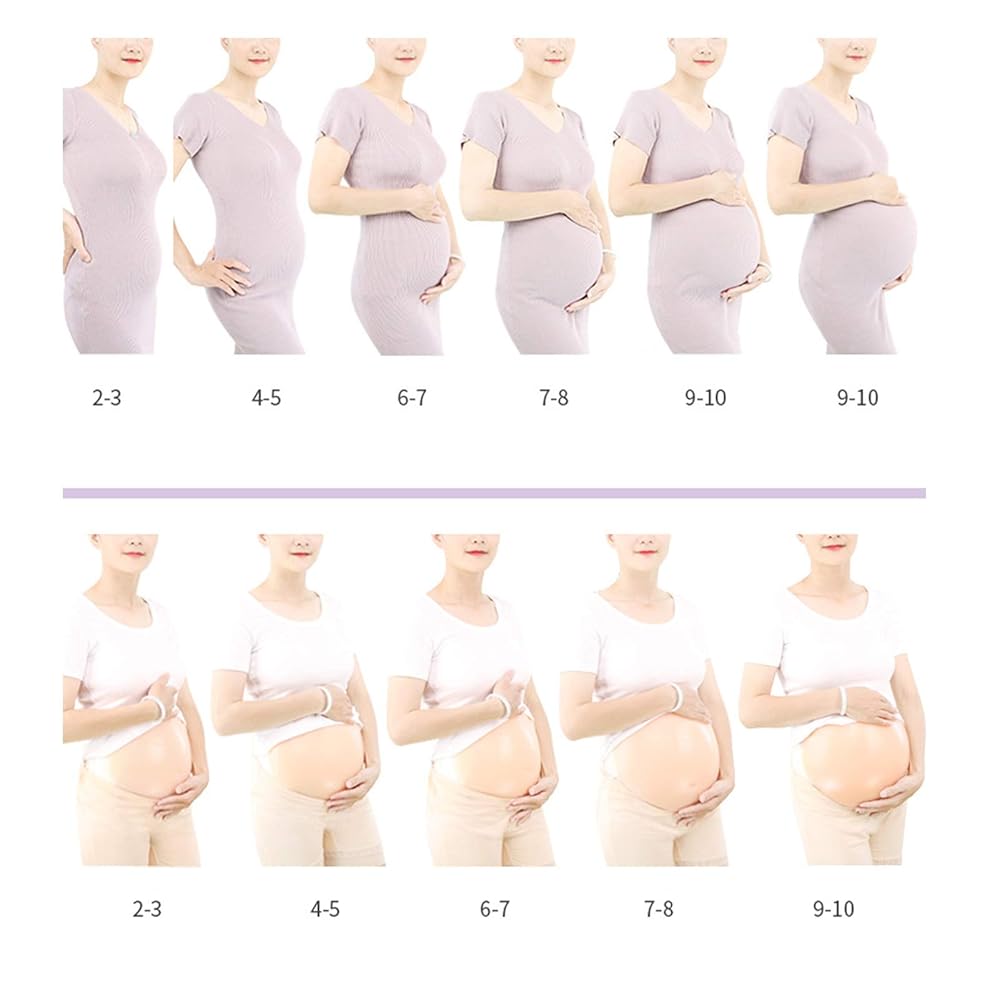 Pregnancy Cosplay Props, 2-4 months/4-5 Month Fake Pregnancy Belly Silicone Artificial Pregnant Tummy Photography Props with Straps(2-4 Months)