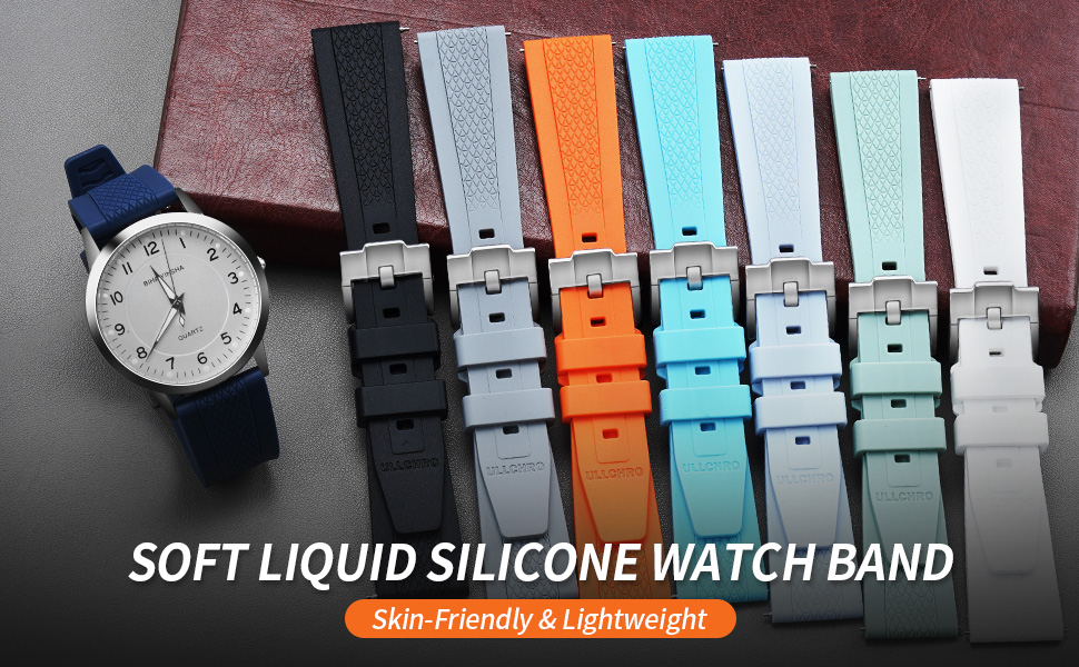[Ultra Soft Silicone Watch Band] Made of premium liquid silicone, this replacement watch band is incredibly soft and flexible, like a rubber watch strap. The perfect watch bands for men seeking all-day comfort and a breathable feel on the wrist.