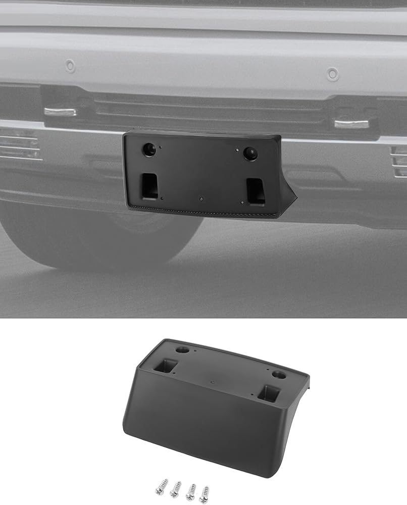 Package included: Front bumper license plate bracket x1 w/license plate screws and mounting hardware, use the included screw can easily secure the license plate tightly to the license plate holder to complete the installation
