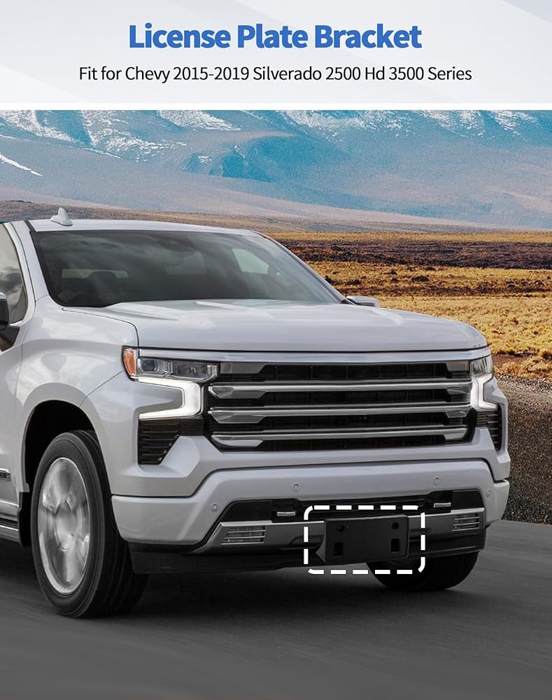 Fitment: Front bumper mounting license plate bracket compatible with 2015 2016 2017 2018 2019 Chevy Silverado 2500, for 2500 / 3500 SERIES, The license plate holder is more conducive to the perfect fixation of the license plate