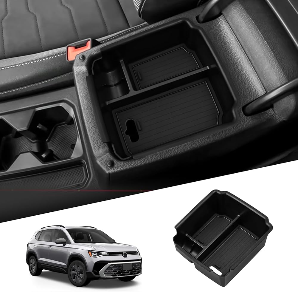 【Slip-resistant design】: The Taos 2025 2026 center console storage tray has a water-resistant and Slip-resistant rubber mat. Reduces noise when small items move while driving