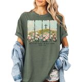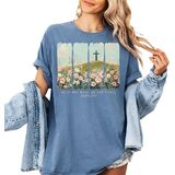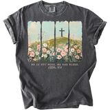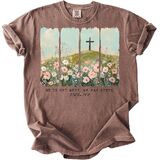 Celebrate the resurrection of Christ in style with this Comfort Colors "He Is Risen" graphic t-shirt. Featuring a serene scene of a cross on a hill surrounded by blooming flowers, this shirt beautifully illustrates the message of faith. The Bible verse "He is not here, He has risen" (Matthew 28:6) is elegantly printed beneath the graphic, making it a perfect choice for Easter, church services, or daily wear to express your faith. Made with Comfort Colors' signature pre-washed cotton fabric, this shirt offers a soft and comfortable fit that will keep you at ease throughout the day.
