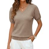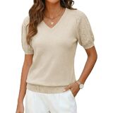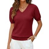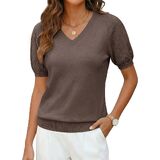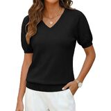 Features: Women's summer tops, short sleeve sweater for women,v neck, puff short sleeve, solid color, a lightweight dressy-casual design that elevates any outfit.