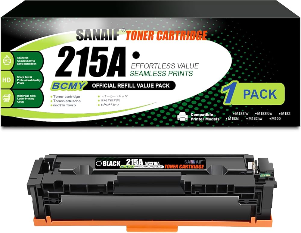 215A W2310A Black High-Yield Pages Toner Cartridges (1-Pack) Compatible for hp 215A W2310A Work with Color LaserJ Pro MFP M183fw M182n; LaserJ Pro M155 M155a Printers|W2310A