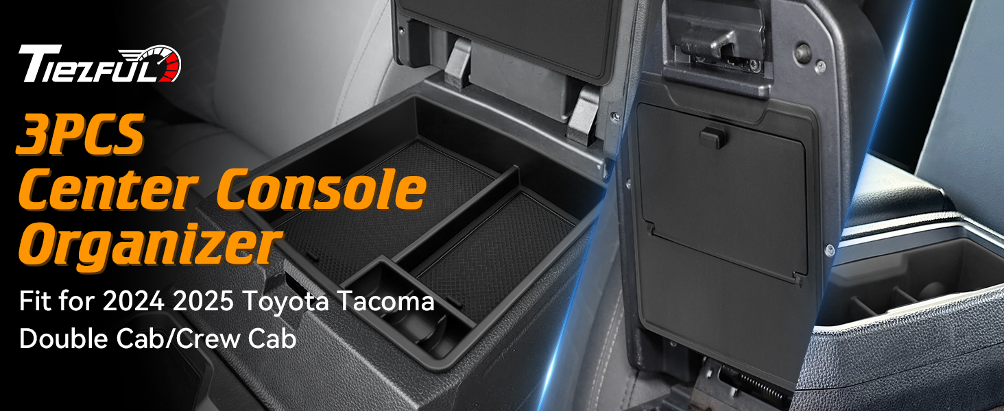 Perfect for your Toyota Tacoma: This set of 3 Center console organizer perfectly fits for Toyota Tacoma 2024 2025 Accessories, include 1pc silicone rear cup holder inserts, 1pc center console organizer tray, and 1pc inner armrest hidden storage box. Verified by 3D scanning to match the original structure.Also fit for Toyota Tacoma 2024 2025 SR, SR5, TRD SPORT, OFF-ROAD, LIMITED, and TRAILHUNTER. Before puchuase. Please check the right vehicle model carefully before purchase