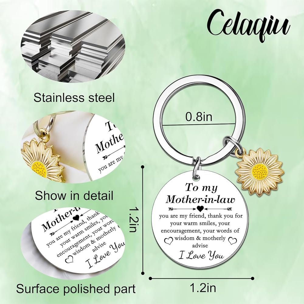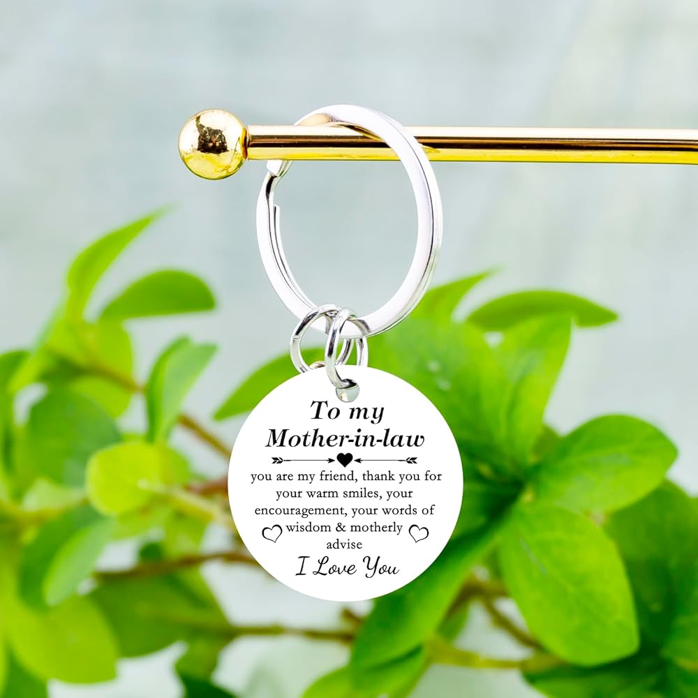 High Quality Keychain: 1.2 * 1.2 Inches. Rust-Resistant, Scratch-Proof And Durable For Daily Use. The Engraving Won't Fade Or Wear Off, Making This a Long-Lasting Keepsake Ideal As Gift For Mother-In-Law.