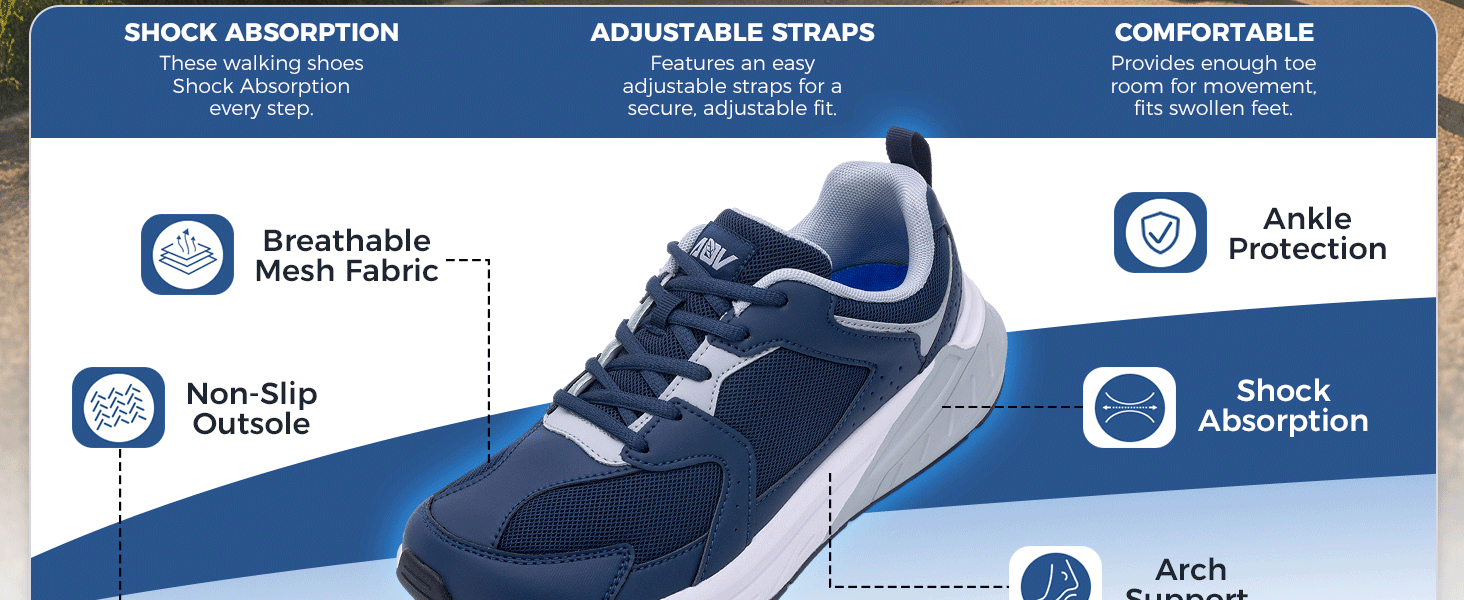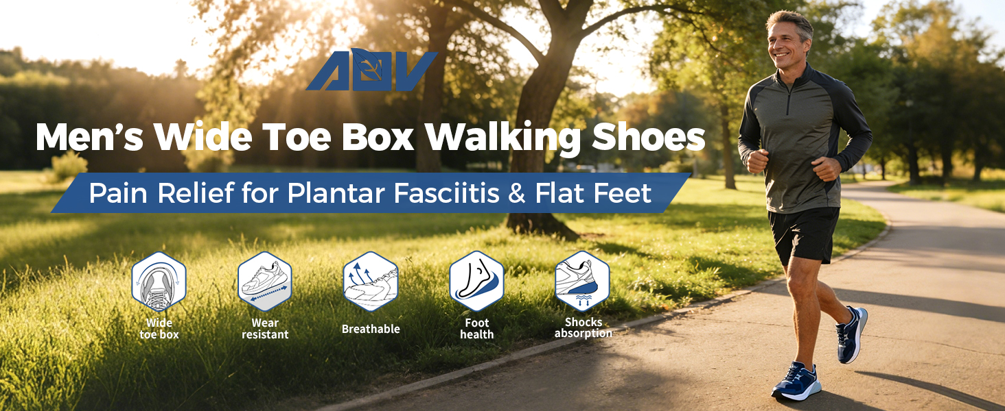 Wide Toe Box Design for Natural Toe Spread & Bunion Relief:Say goodbye to cramped,sore toes!AOV wide toe box allows your toes to splay naturally,eliminating pressure on bunions,hammertoes,and swollen feet.Perfect for men with wide feet or those recovering from foot injuries,this design ensures unrestricted movement and all-day comfort.