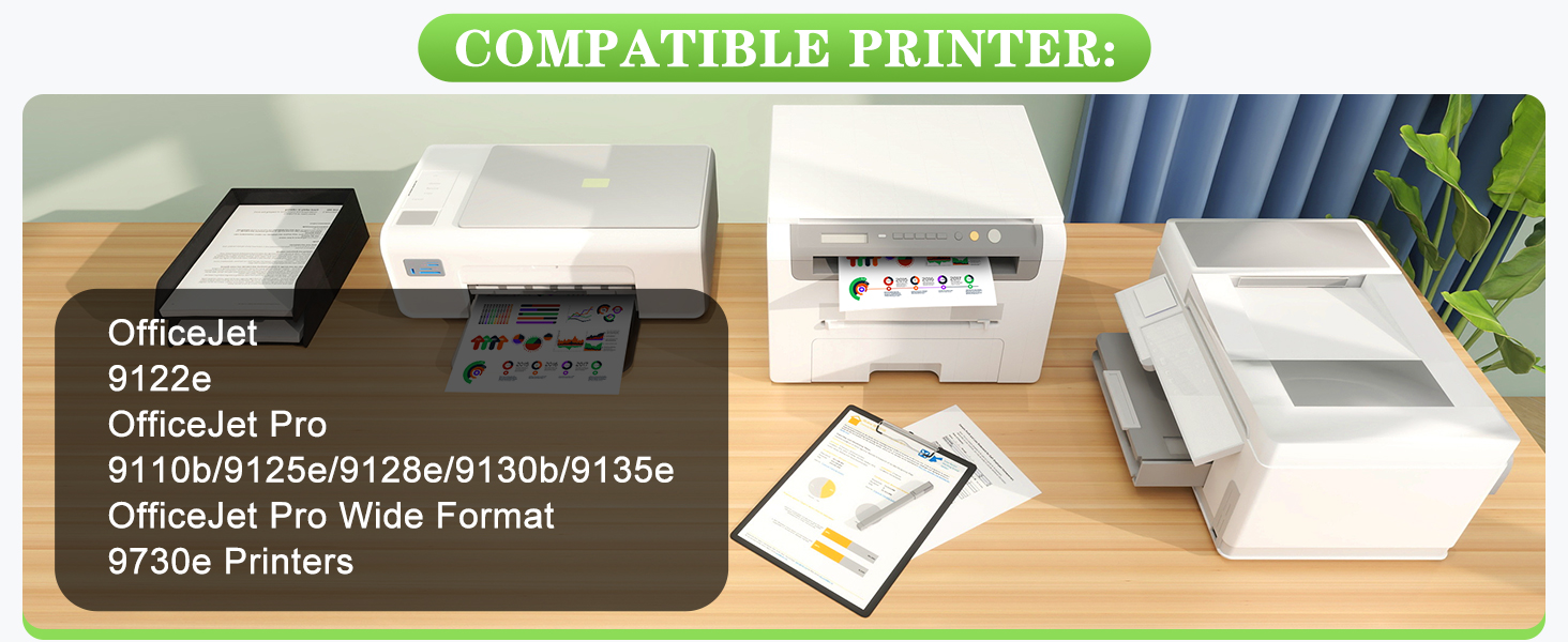 Wide Compatibility: Compatible with HP OfficeJet Pro Wide Format 9730e OfficeJet Pro 9110 9120 9122 9125 9128 9130 9135 9730 Printers.Not compatible with *e series printers enrolled and paid for HP+ (HP instant ink) service