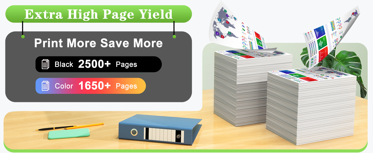 923e 923XL Ink Cartridges High Yield: Up to 1,000+ pages per 923e black toner cartridge and 800+ pages per color cartridge (Letter/A4, at 5% coverage).