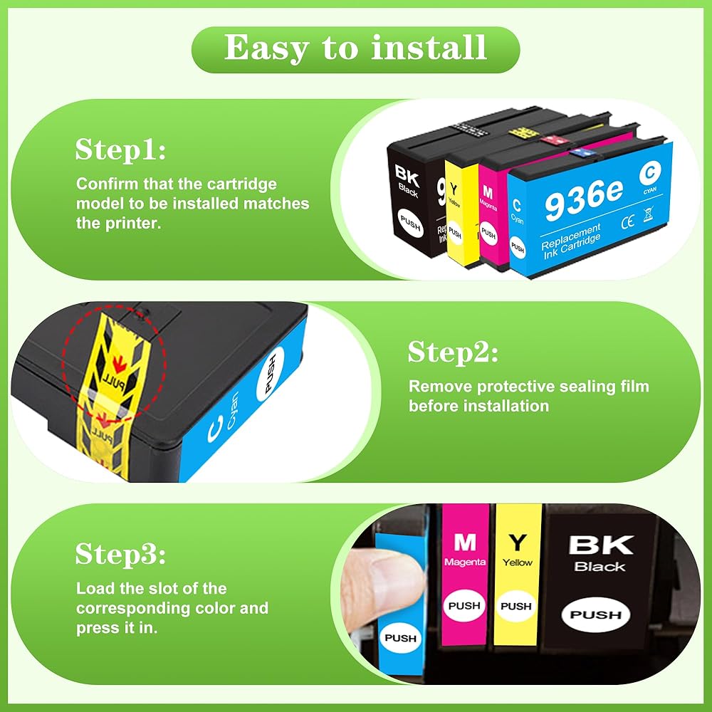 Package Contents: 936e 936XL Ink Cartridges combo 4 pack (Black/Cyan/Magenta/Yellow) Compatible with OfficeJet Pro Wide Format 9730e OfficeJet Pro 9110 9120 9122 9125 9128 9130 9135 9730 Printers.