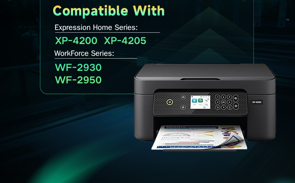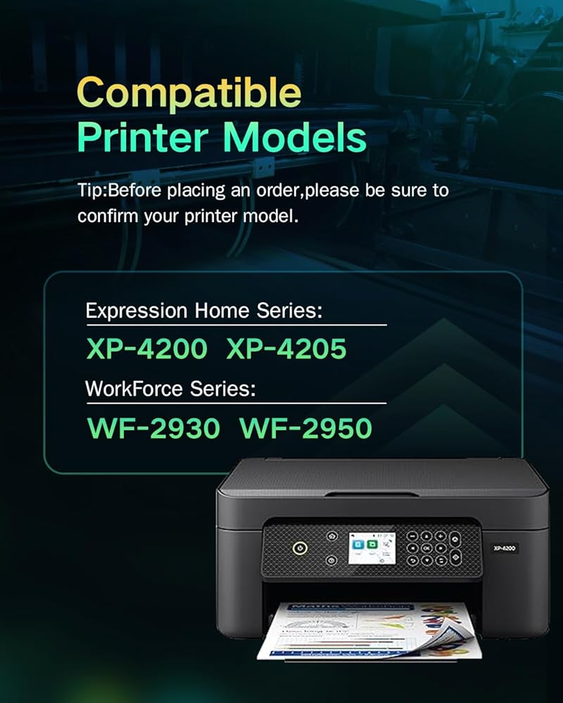 Printer Compatibility: Compatible with XP-4205 XP-4200 WF-2950 WF-2930, for Epson XP-4205 ink cartridges, for Epson XP-4200 ink cartridges, for Epson WF-2950 ink cartridges, for Epson WF-2930 ink cartridges