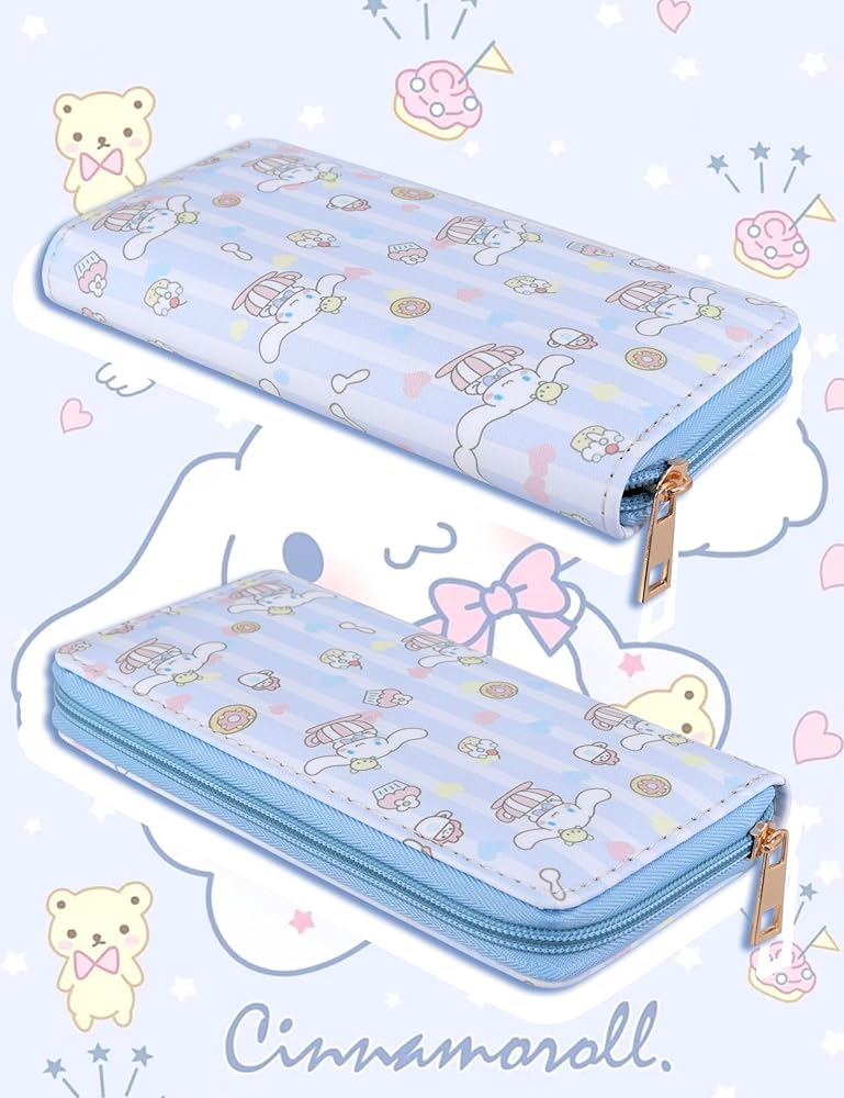 Roffatide Women's Zip Around Clutch Wallet Cinnamoroll Long Travel Wallet Faux Leather Purse Passport Phone Card Holder Wallet